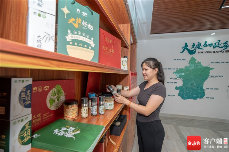 5月17日,在海口市琼山区大坡镇一农产品网点,工作人员在摆放胡椒产品。 “前两年,一斤大坡胡椒最多能卖十五六元。”海口立立发胡椒专业合作社负责人苏运强介绍,合作社于2021年申请使用“大坡胡椒”区域公用品牌后,平均售价每斤20元,品质最好的能卖到每斤25元。 品牌共建、利益共享,也让大坡椒农形成发展的命运共同体,开始自发维护大坡胡椒的品牌形象。目前,大坡镇共培育10家胡椒企业,带动胡椒种植户达3300户,胡椒年销量由原先的4000吨增长至6500吨。 “土字号”变成“金名片”,大坡胡椒的品牌化之路,可以在海南找到太多案例。 三亚芒果、五指山大叶茶、保亭红毛丹、海口火山荔枝……一个个区域公用品牌带动了产业发展,如今,海南又升级了品牌强农的新模式—— 从省级层面加强统筹,全力打造海南省级全品类区域公用品牌“海南鲜品”,实现产业链布局、品牌标识、管理机制、品控标准、市场形象的“五统一”。以“海南鲜品”为引领,海南已带动省级区域公用品牌11个、市县农产品区域公用品牌10个、知名企业品牌15个。 从制造到创造 “葫芦娃”闯出大市场 当每家工业企业都拥有标准化的流水生产线时,“海南制造”如何走上“身份标识化”之路? “靠创新。”这是海南葫芦娃药业集团股份有限公司党委书记、董事长刘景萍的回答。 该公司办公大楼前最醒目的位置,挂了一块企业科协的牌子。小小的细节,与这一答案相呼应。 葫芦娃药业研发部经理王家是公司的一名研发人员,也是公司科协活动的“积极分子”,“公司科协经常邀请业内大咖、医疗园区及高校专家,与我们研发人员和生产技术骨干分享交流经验,机会不能错过。”