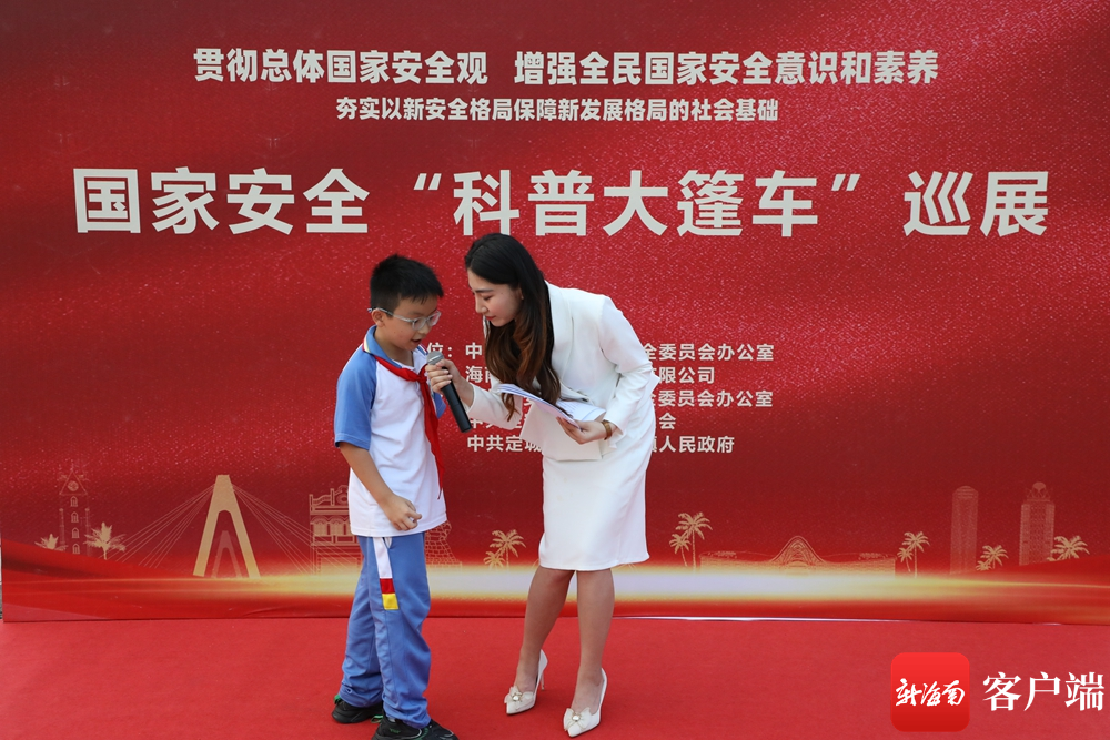 小朋友参与国安知识大转盘现场答题。 据了解,为推动国家安全宣传教育工作广泛深入开展,提升全民国家安全意识和素养,强化全民国防意识,厚植国家安全根基,筑牢高质量发展安全屏障,海南省委国安办联合海南省融媒体中心,以总体国家安全观为指导,创新宣传形式,丰富宣传载体,以群众喜闻乐见的方式开展线上、线下宣教及网络新媒体互动,进一步提高广大群众对国家安全法律法规的知晓率,为海南自贸港建设营造浓厚的国家安全宣传教育氛围,着力推动党的二十大精神进社区、进园区、进机关、进校园,使大安全理念深入人心、落地生根。