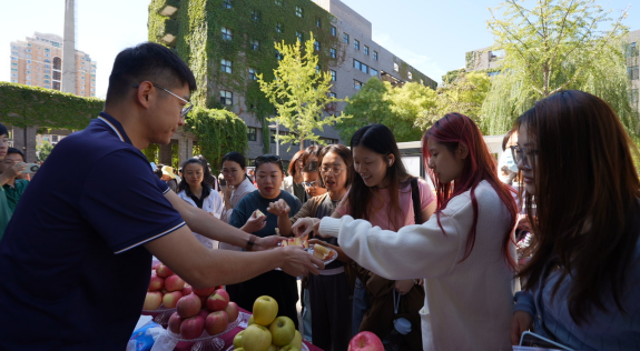 中央美术学院师生品尝延安苹果 “富士、米奇拉、秦脆、瑞香红、鲁丽、瑞雪、华硕、巴克艾……延安苹果品种原来这么多!好吃、好看!味道真香!”18日,在延安苹果走进中央美术学院品牌推荐活动中,中央美术学院师生们品苹果、晓历史、明渊源,感知延安“小苹果托起大产业”的时代内涵。正如中央美术学院党委副书记王晓琳所言,延安是中央美术学院红色血脉的源头,此次活动把延安苹果与红色故事带进中央美术学院,让00后学生重温红色传承、体悟新时代乡村振兴,对于学生成长特别重要,对于中央美术学院立德树人意义非凡。 正午时分,北京林业大学食堂门口广场变身延安苹果进高校的“青春市集”,以“一颗苹果念初心、延安精神永传承”为主题的理论宣讲与之无缝衔接:志愿者们变身延安苹果代言人,“花式”带货。 推介展销热度高涨,产销互动同样气氛活跃。活动期间,延安的市县域代表分别走进首发智慧物流园、中国供销电商“832平台”、京东科技进行参观、座谈和深度对接,为延安苹果拓宽线上线下销路、加强冷链物流建设等谋篇布局。